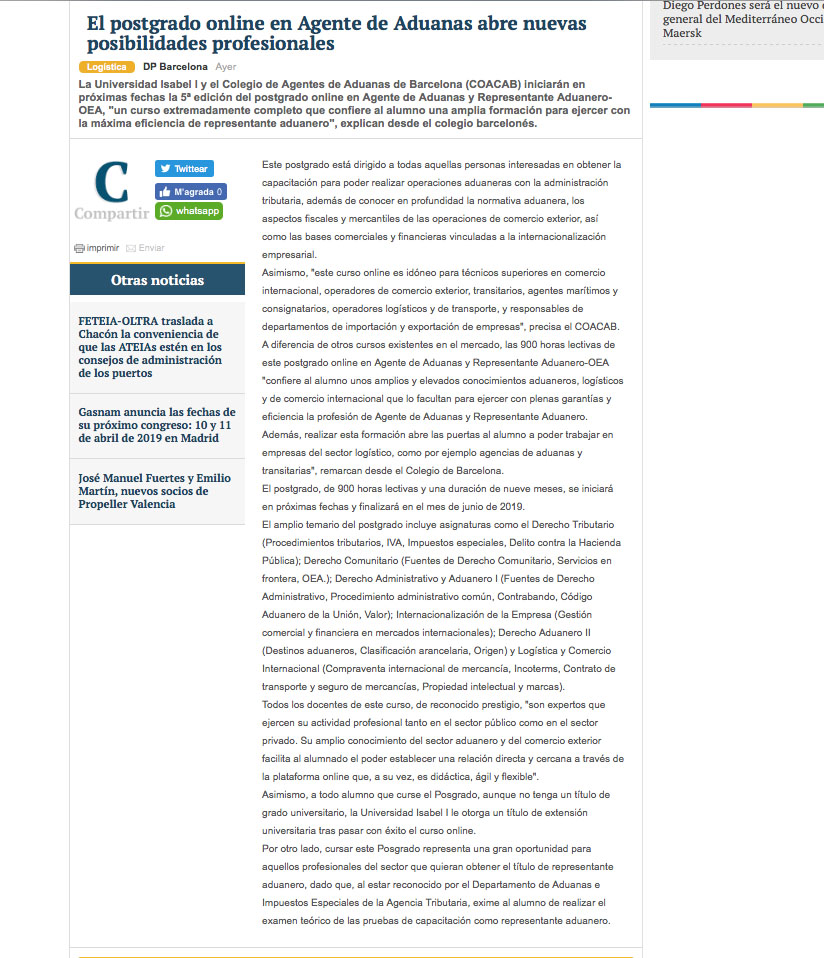 25/09/2018 - EL POSGRADO ONLINE EN AGENTE DE ADUANAS ABRE NUEVAS POSIBILIDADES PROFESIONALES