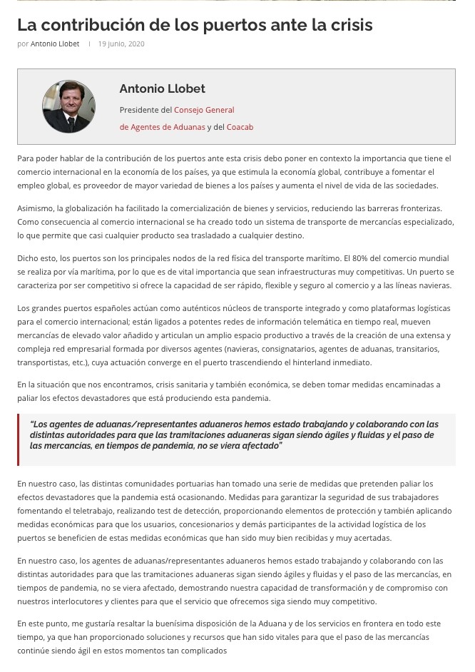 19/06/2020 - LA CONTRIBUCIÓN DE LOS PUERTOS ANTE LA CRISIS